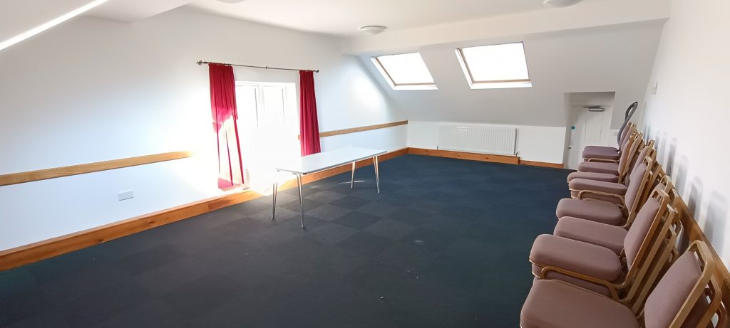 The oak room is behind the main hall and ideal for smaller events. It is 9m wide x 4.8m long.