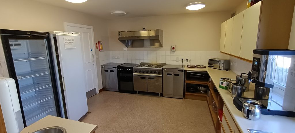 The well-equipped kitchen adjoins the Main Hall with access also from the back rooms. There is a large serving hatch from the kitchen to the Main Hall which can used as a bar.